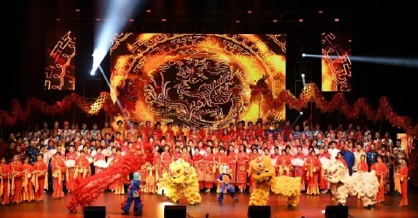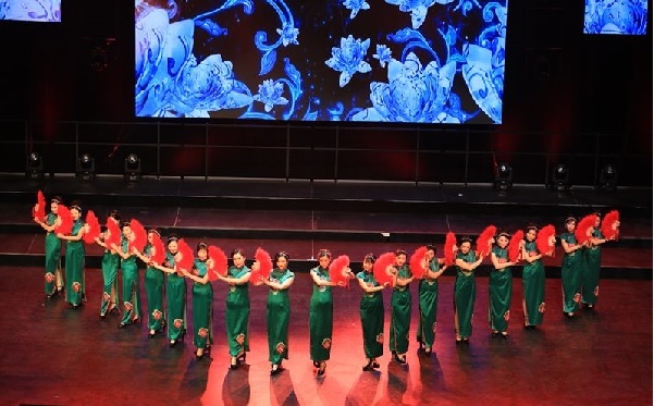 以《中华魂》引领开场,150多位旗袍女子飘然而来,狮子舞起来,腰鼓打起来,功夫练起来,龙的传人站起来,中国人骄傲地挺起来!