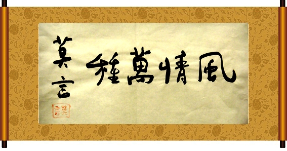 见莫言先生左书,笔墨丰润,隐忍妥帖,别有风情。叹而今舞文者众,弄墨者希。口占一首,略表敬意。莫道莫言莫认同,左书一纸十年功。钟情笔墨风姿色,终究折枝在月宫。