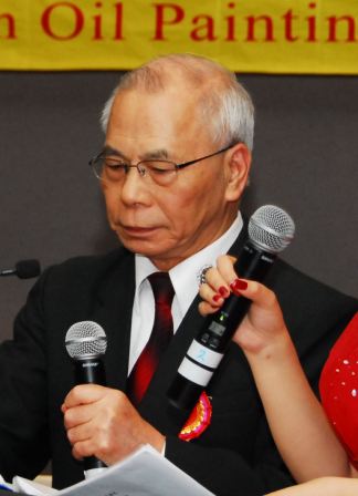 澳华文化博物馆筹委会召集人何与怀博士代表澳华文化博物馆成立典礼暨艺术家蓝图胜油画拍卖晚会的承办与协办单位致欢迎词,对各位嘉宾的光临表